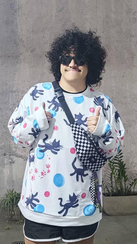 🌏 Ships worldwide! I'll show you in spring, it's a treacherous thing.. Inspired by Robert Smith's hand-painted cat and dot jumper from The Cure's 1984 photo shoots. This sweatshirt is colorful, warm, and cozy, with a soft fleeced inside. A guaranteed mood-lifter. :D