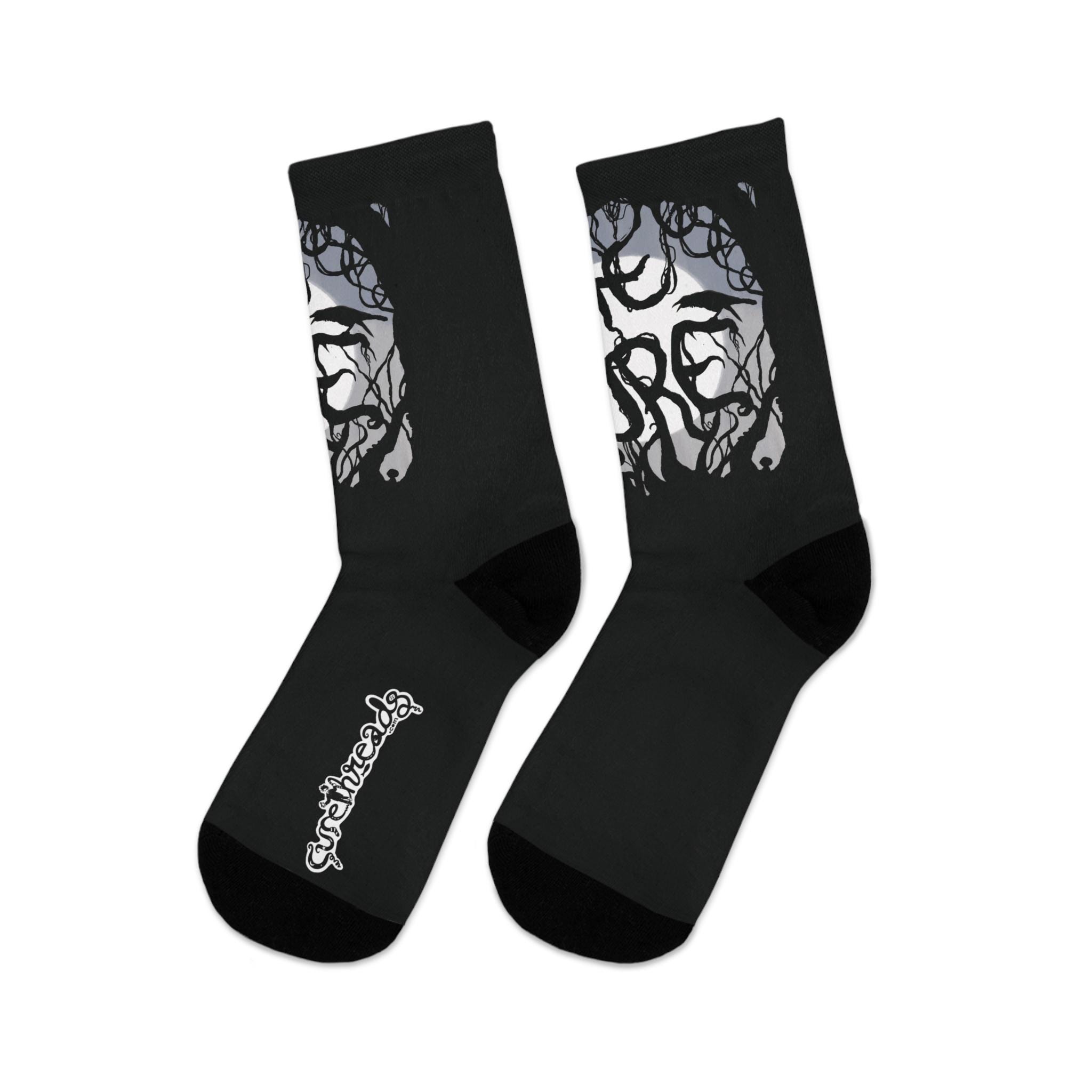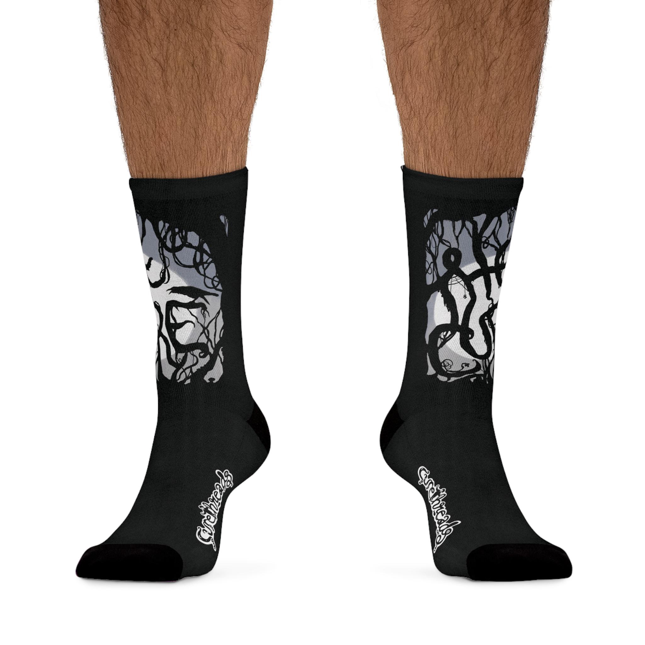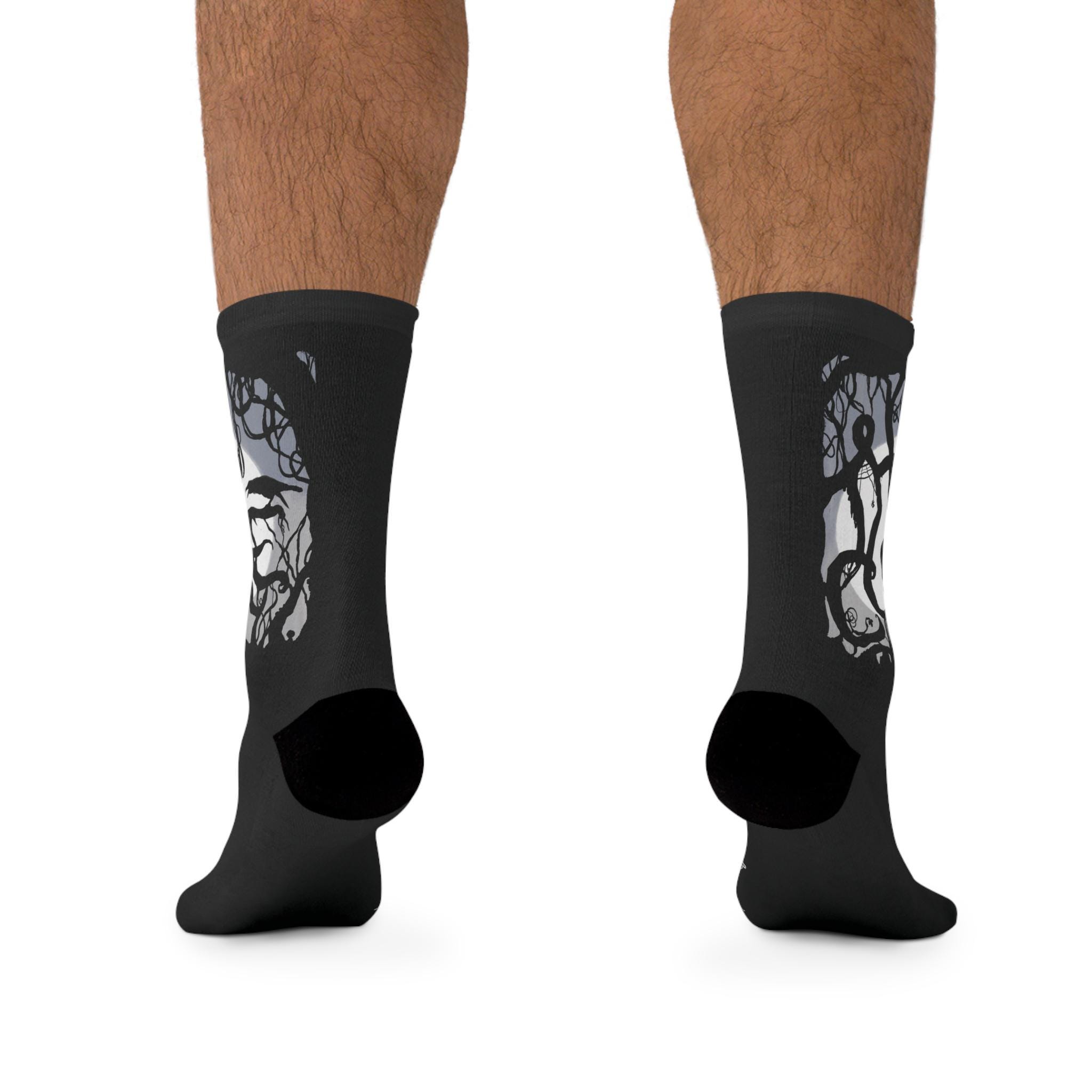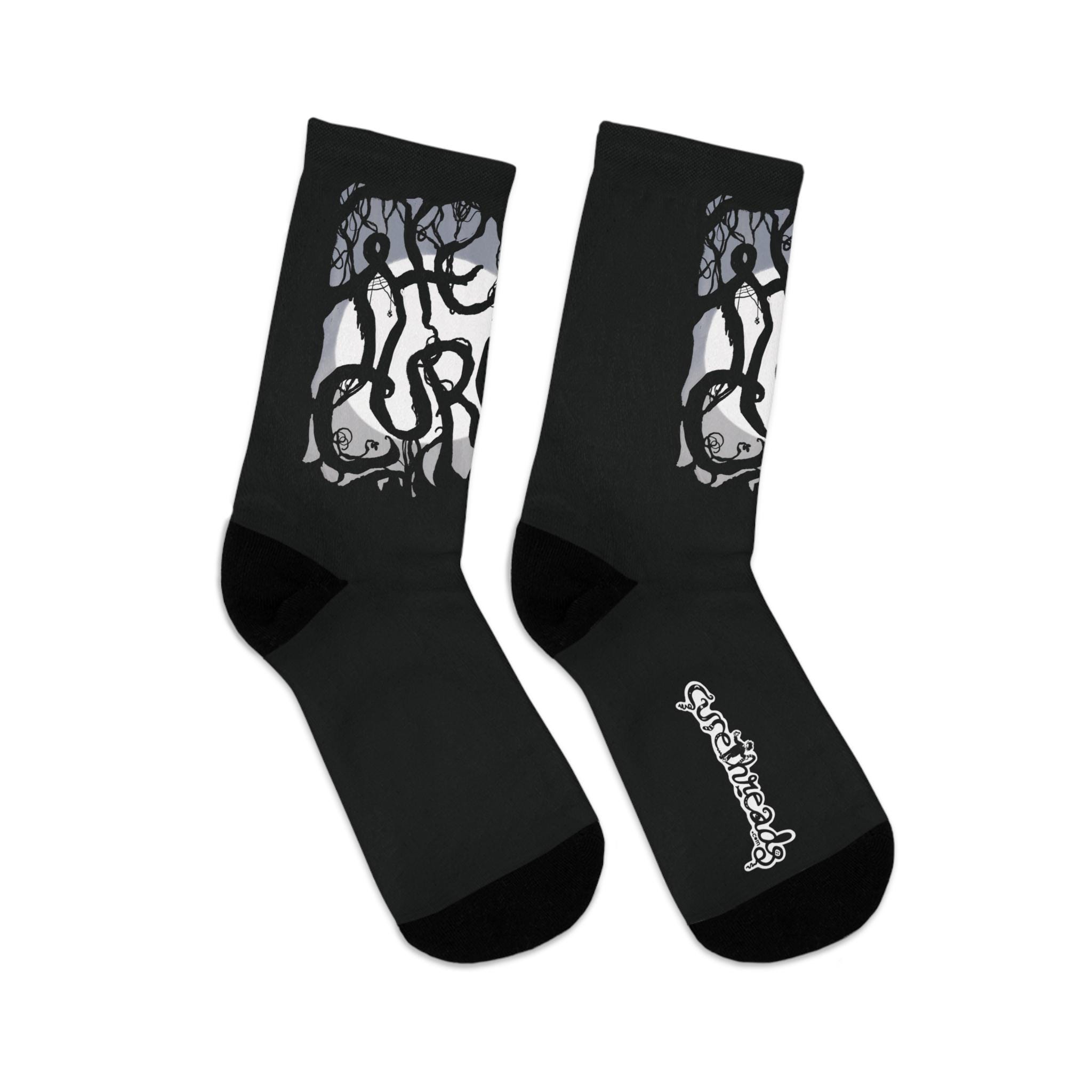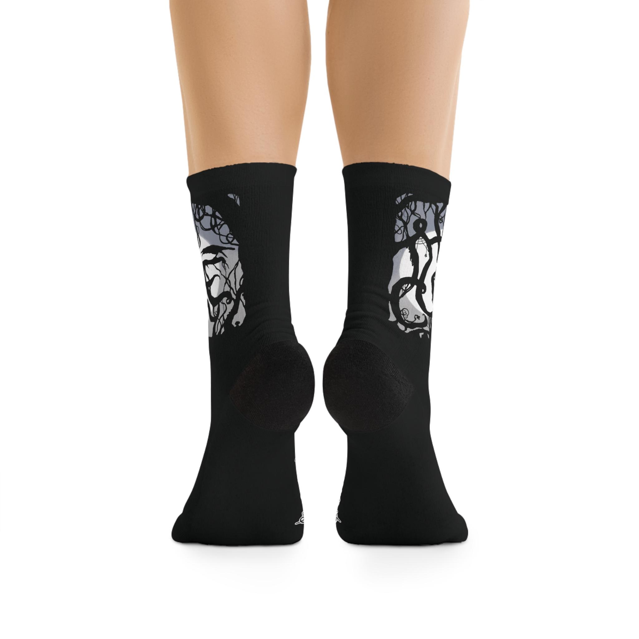 Dream the crow black dream in our favorite soft, stretchy socks for fans of The Cure and The Crow. I wear these with Docs, platform boots and roller skates. Great socks for dancing because there are no toe seams! No blisters! No sweat! Just gothic toe bliss. CARE: Wash inside out in cold water and hang to dry to keep them soft and black and velvety. The design is printed on white socks on demand. Please allow extra time for shipping for the holidays!