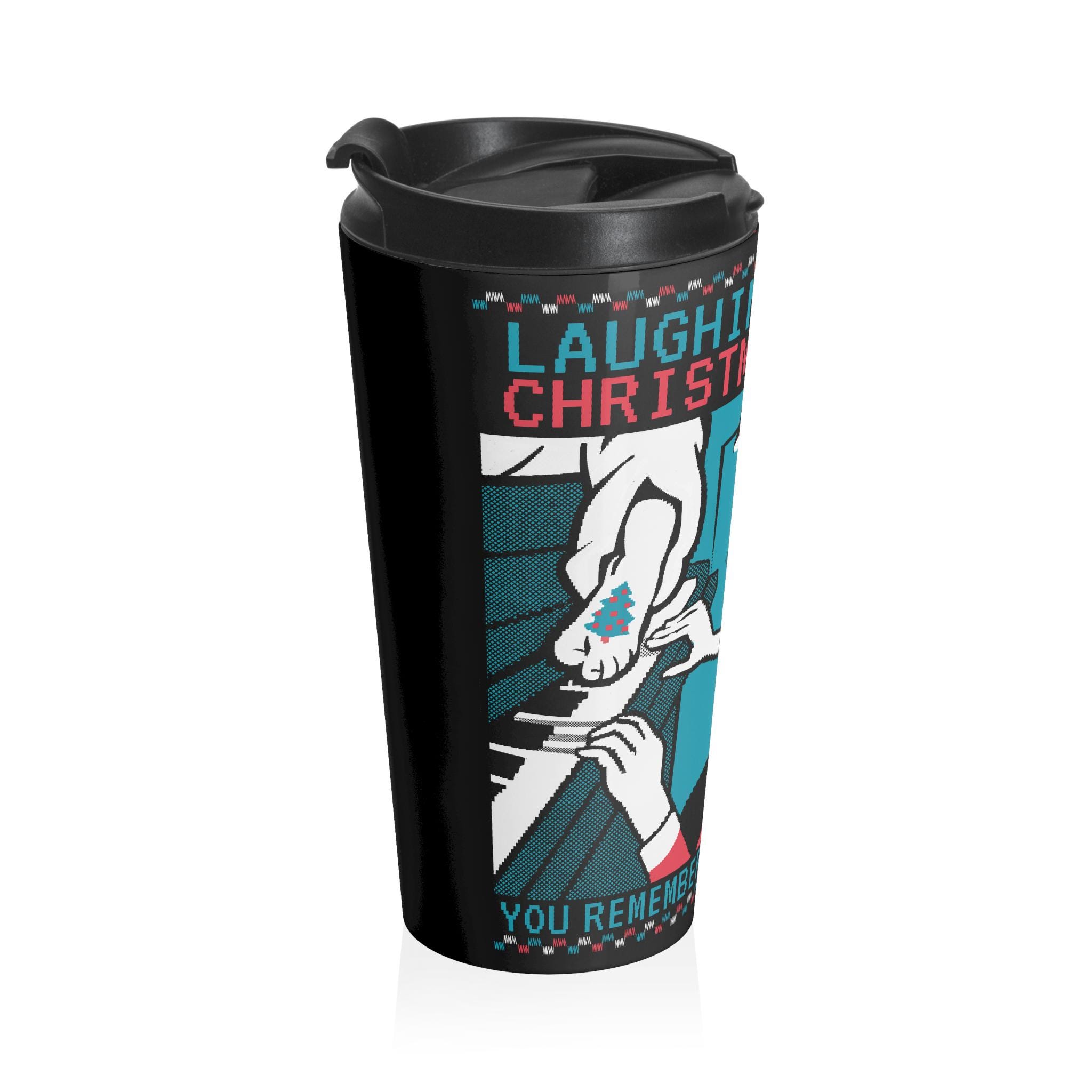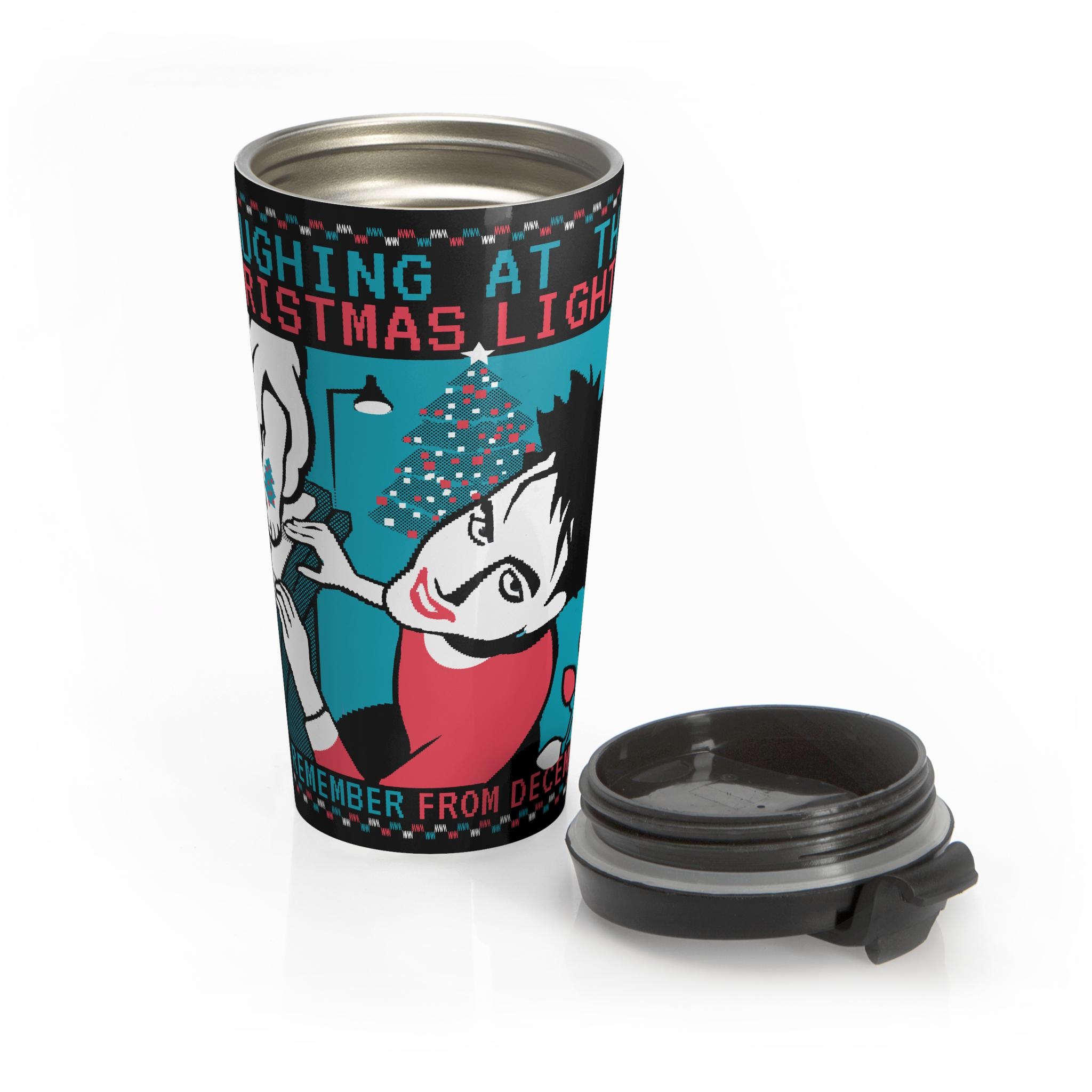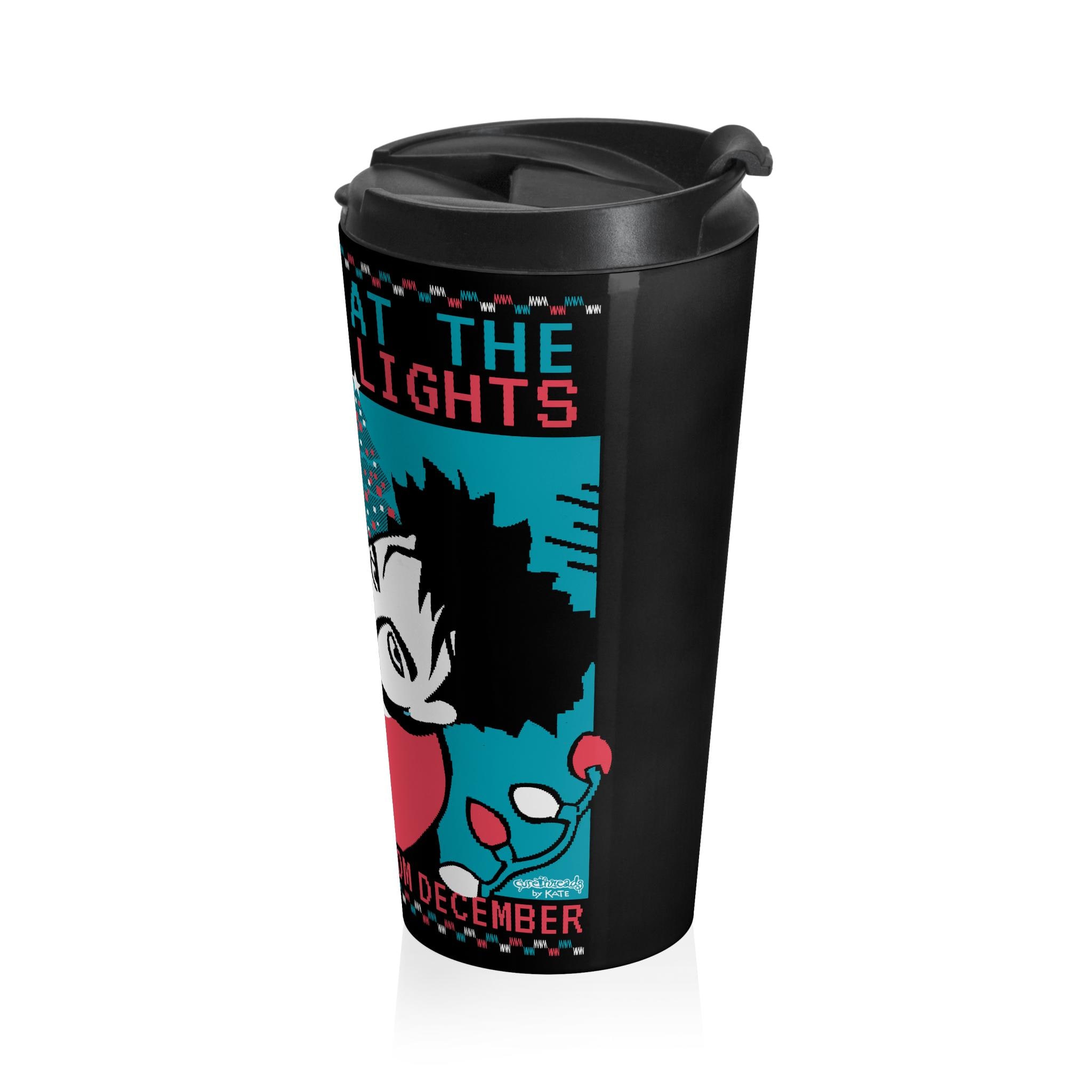 You think you're tired now, but wait until coffee. This 15oz stainless steel travel mug carries a slice of 1980s goth synthwave dance hits — Robert Smith in a bold teal, red, and white bitmap illustration inspired by the Let’s Go To Bed video. It’s built to go with you to morning commutes, late-night mix sessions, and chilly walks to the café. The double-walled vacuum insulation keeps your French press hot while the secure screw-on lid and flip-top make it simple to sip on the move without drips. The graphic reads like a small rebellion against seasonal sameness, a nod to people who prefer their rituals — and their coffee — with a little subversive color. Rounded corners and a matte feel make it comfortable to hold, and the dishwasher-safe finish means it slips easily into everyday life.