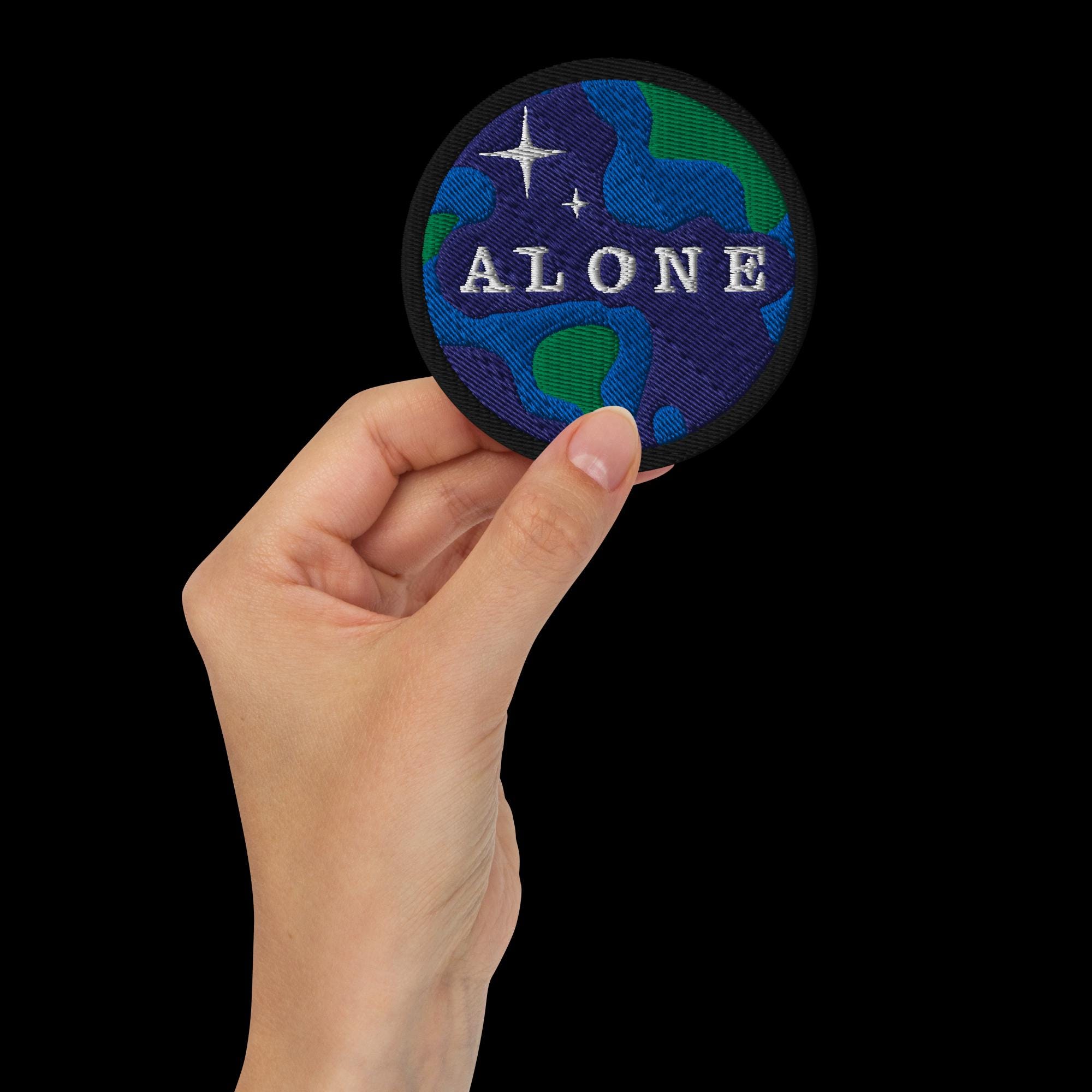 This 3-inch round embroidered patch is designed in the blues, greens and white threads of our lost world. Iron the ALONE patch by Curethreads onto your favorite jacket, bag, carry-on, hat, sweater, scarf, or tee to show your allegiance as a Curehead.