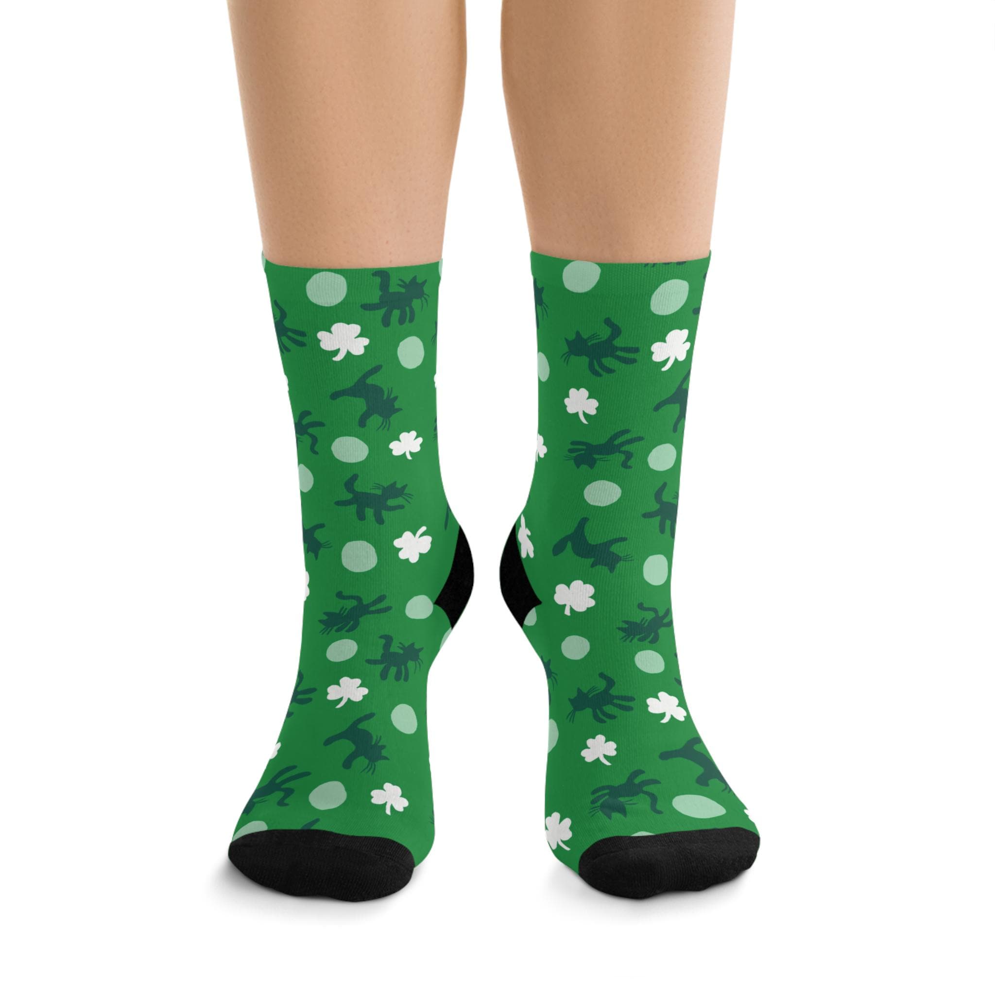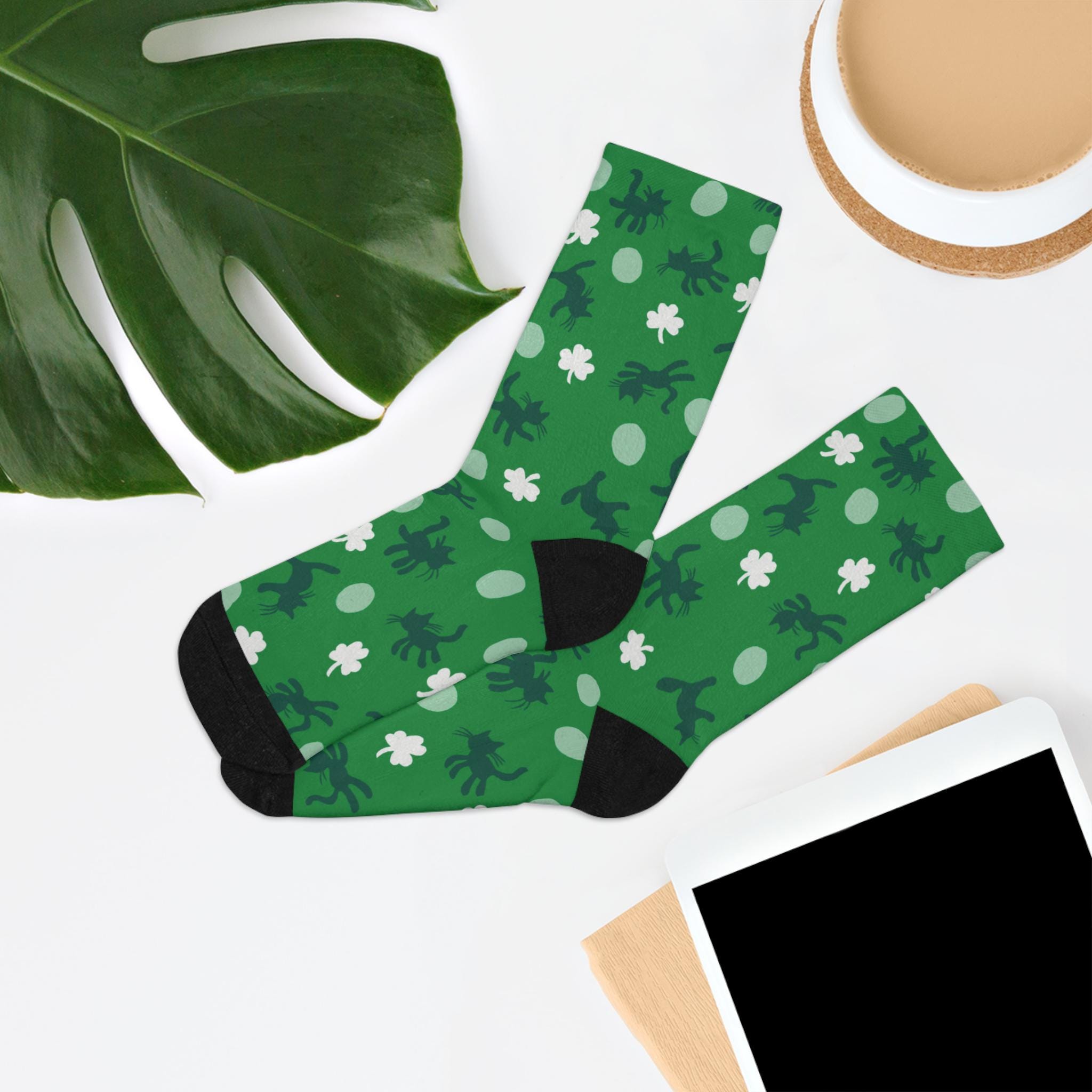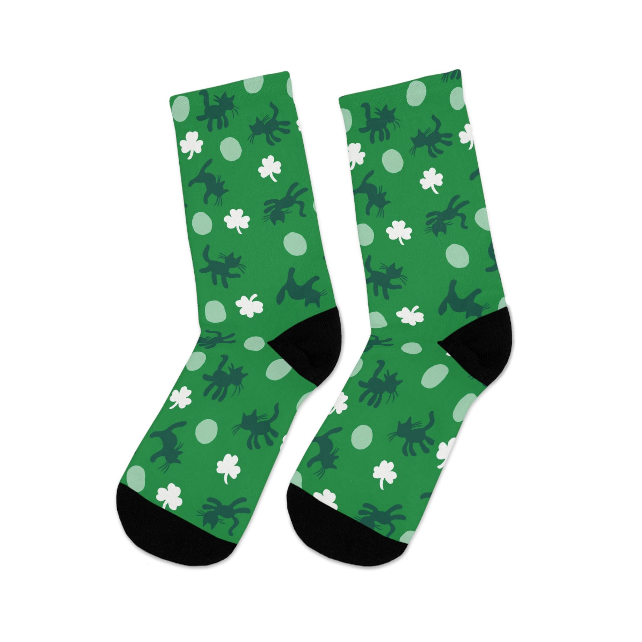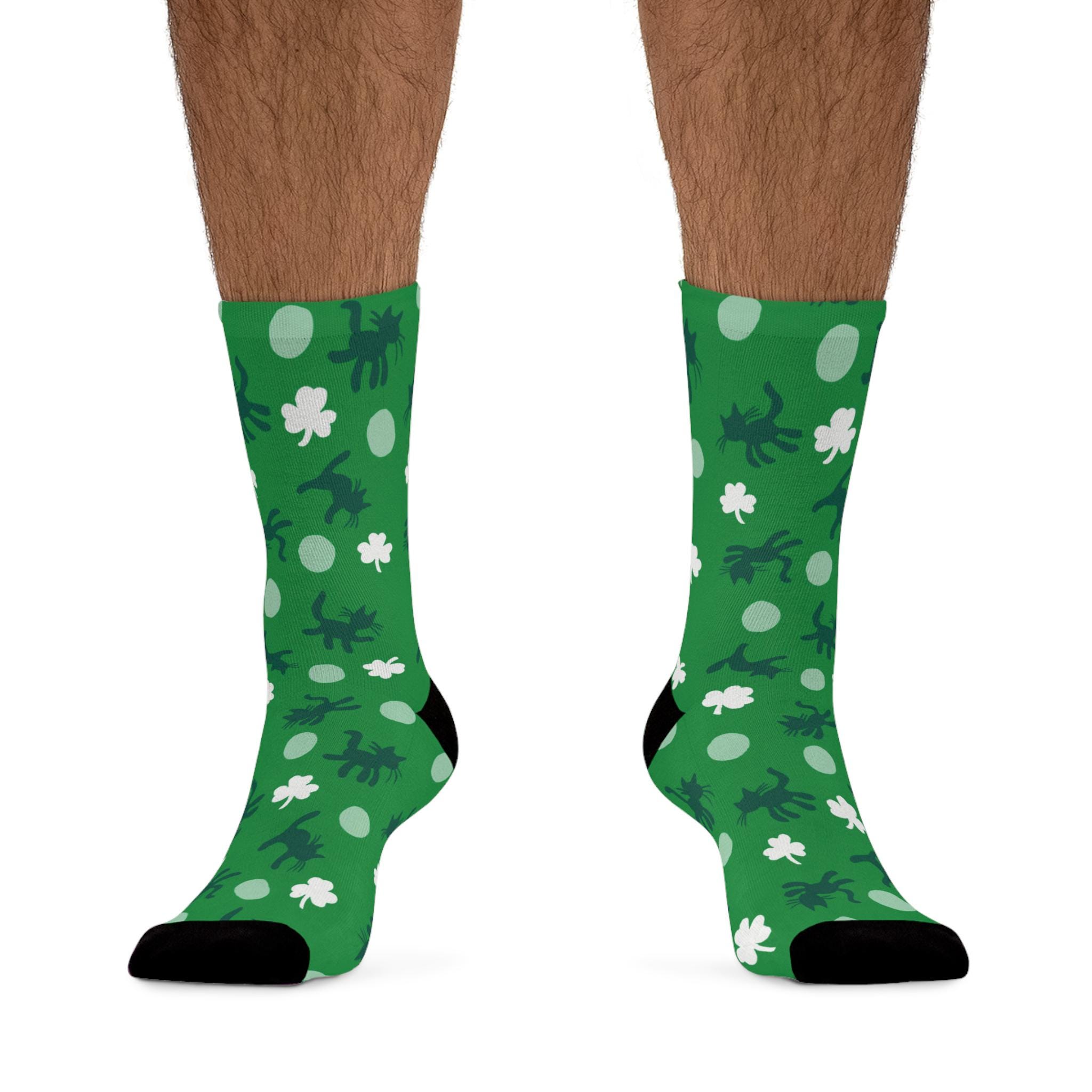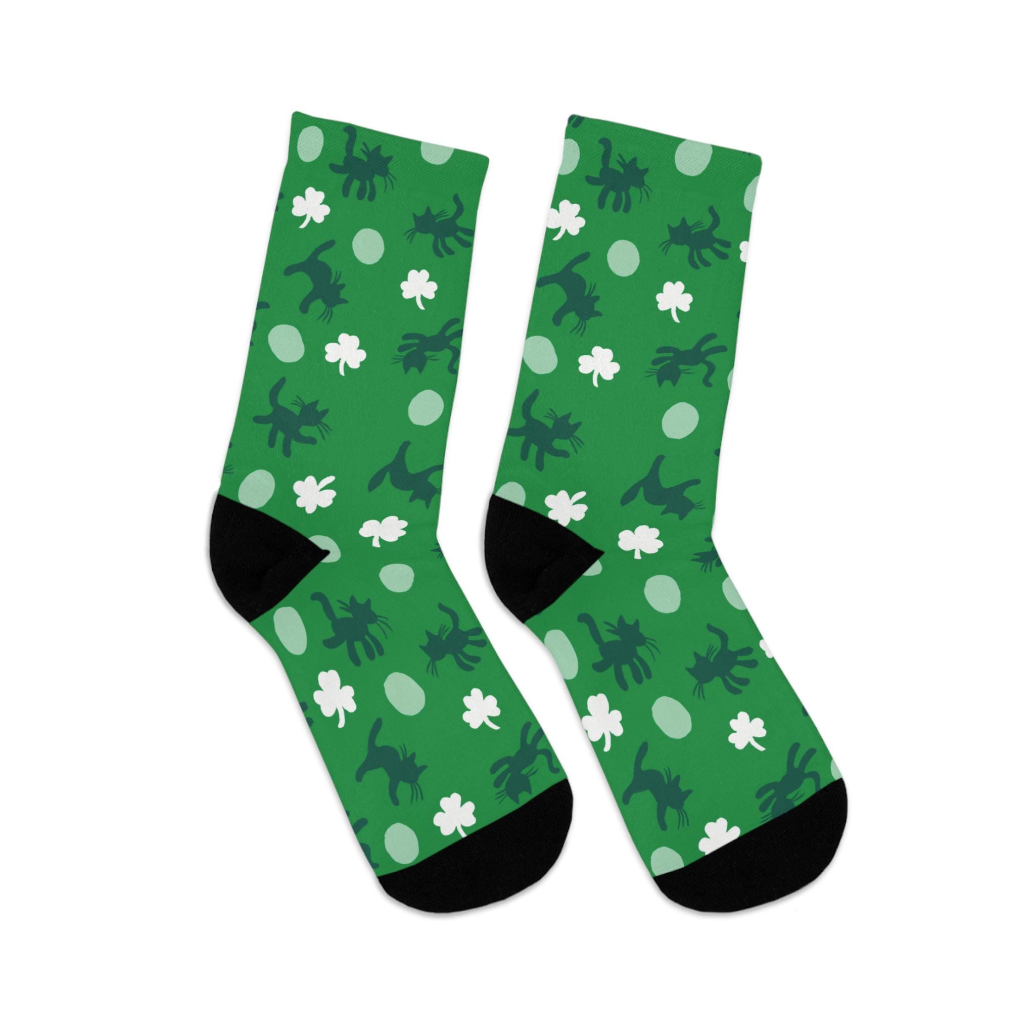 Celebrate your love for Ireland, cats, and The Cure in these wonderfully wonderfully pretty stretch crew socks by Tribe Socks. My favorite printed Curethreads! So cozy, these socks hug your feet without bunching at the toes. One size fits most, they are just a little big but not slouchy on my feet (size 7 womens). Turn inside out when washing on gentle cycle in cold water and hang to dry, they'll last several years!
