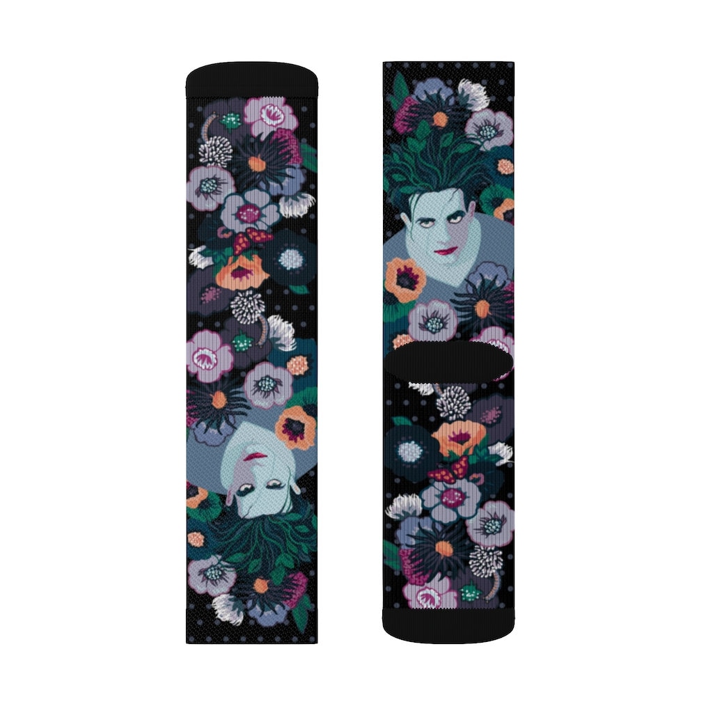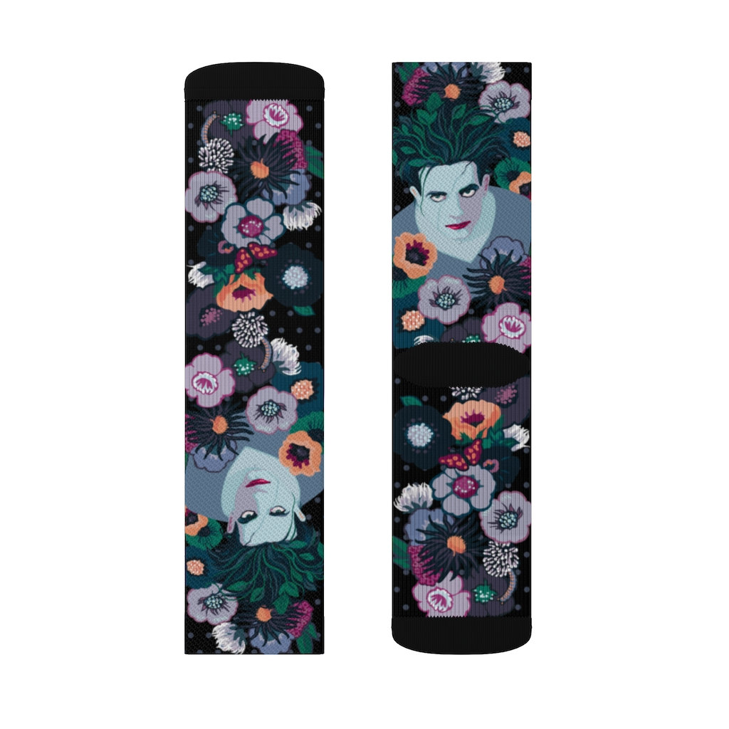 BEST SELLER 🌏 🇺🇸 Ships Worldwide from the USA. International addresses, please allow 2-3 weeks for shipping after printing & processing. Men's sizing. Inspired by The Cure's music and the album, Disintegration. These high-quality mid-weight poly blend socks are ribbed on the outside and smooth on the inside. They come in three lengths for every shoe style. Side seams instead of toe seams. Super cute with boots, Mary Janes, and roller skates!